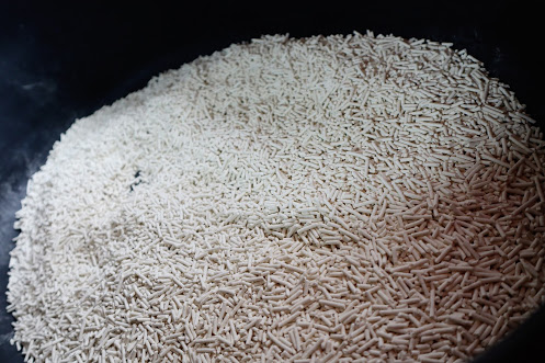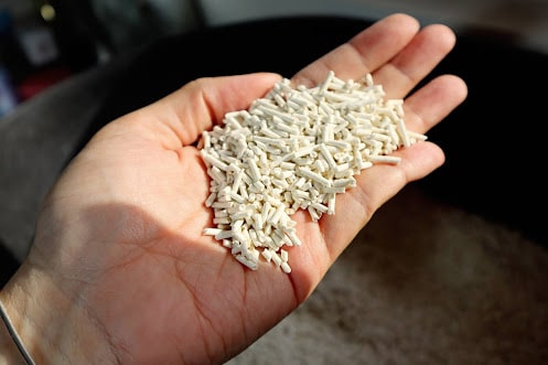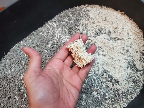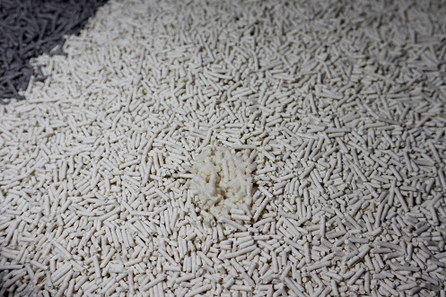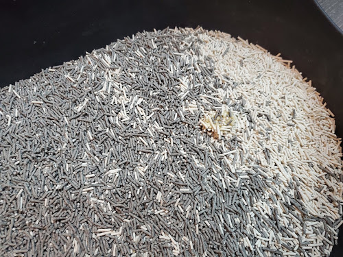 ▲ 上圖灰色的為活性碳豆腐砂、白色為原味豆腐砂。