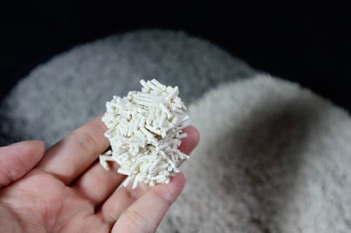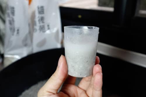 不用3秒鐘就可以看到貓砂稍微膨脹凝結成一塊。