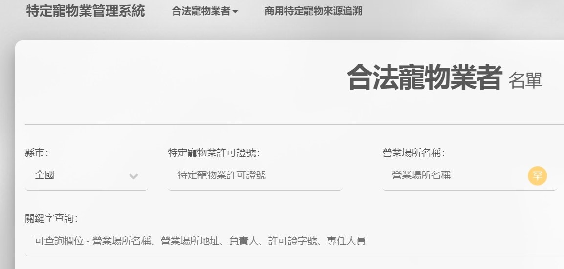 那要如何知道一家貓旅館是否合法呢?可以使用GOOGLE搜尋「特寵系統」