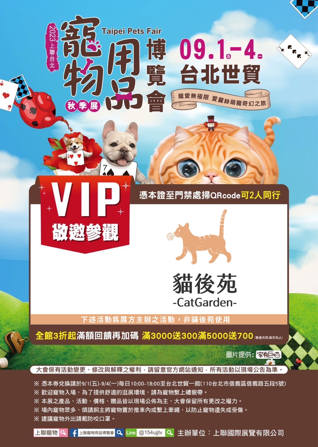【2023 免費索票】9/1 – 9/4 台北上聯寵物展