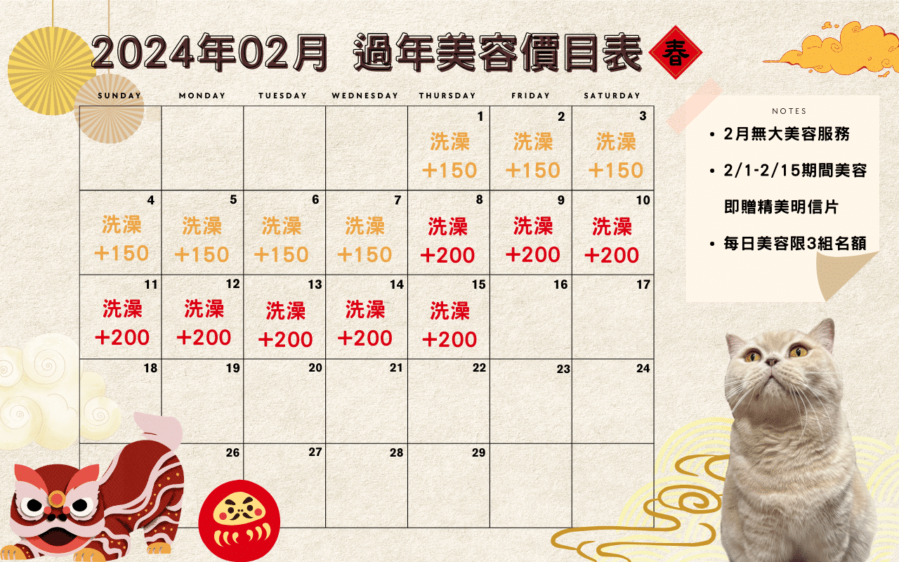 2/1-2/7 貓美容洗澡加價$150元(一隻貓)