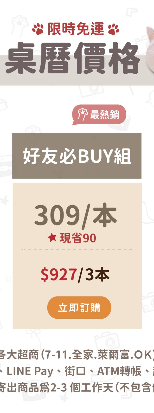 桌曆還特別加入了公益元素,每售出一份桌曆,部分收益將捐贈給貓咪保護機構,支持流浪貓咪的救助行動。用這份充滿愛心的禮物,為自己或身邊的朋友送上溫暖和關懷吧!